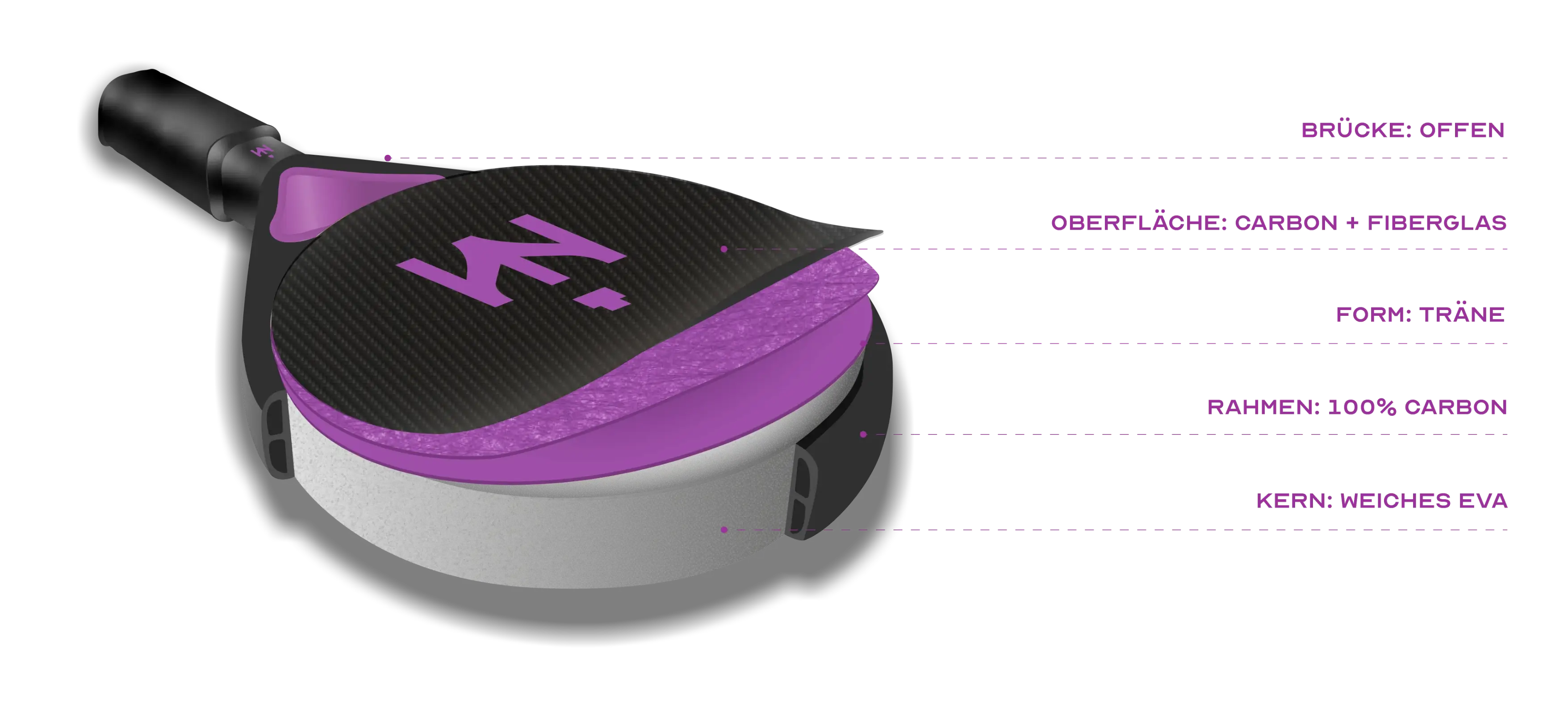 Für Spielerinnen und Spieler entwickelt, die einen Schläger suchen, der ihnen Ausgewogenheit im Spiel verleiht und ihnen ermöglicht, schnell vom Angriff in die Verteidigung zu wechseln.